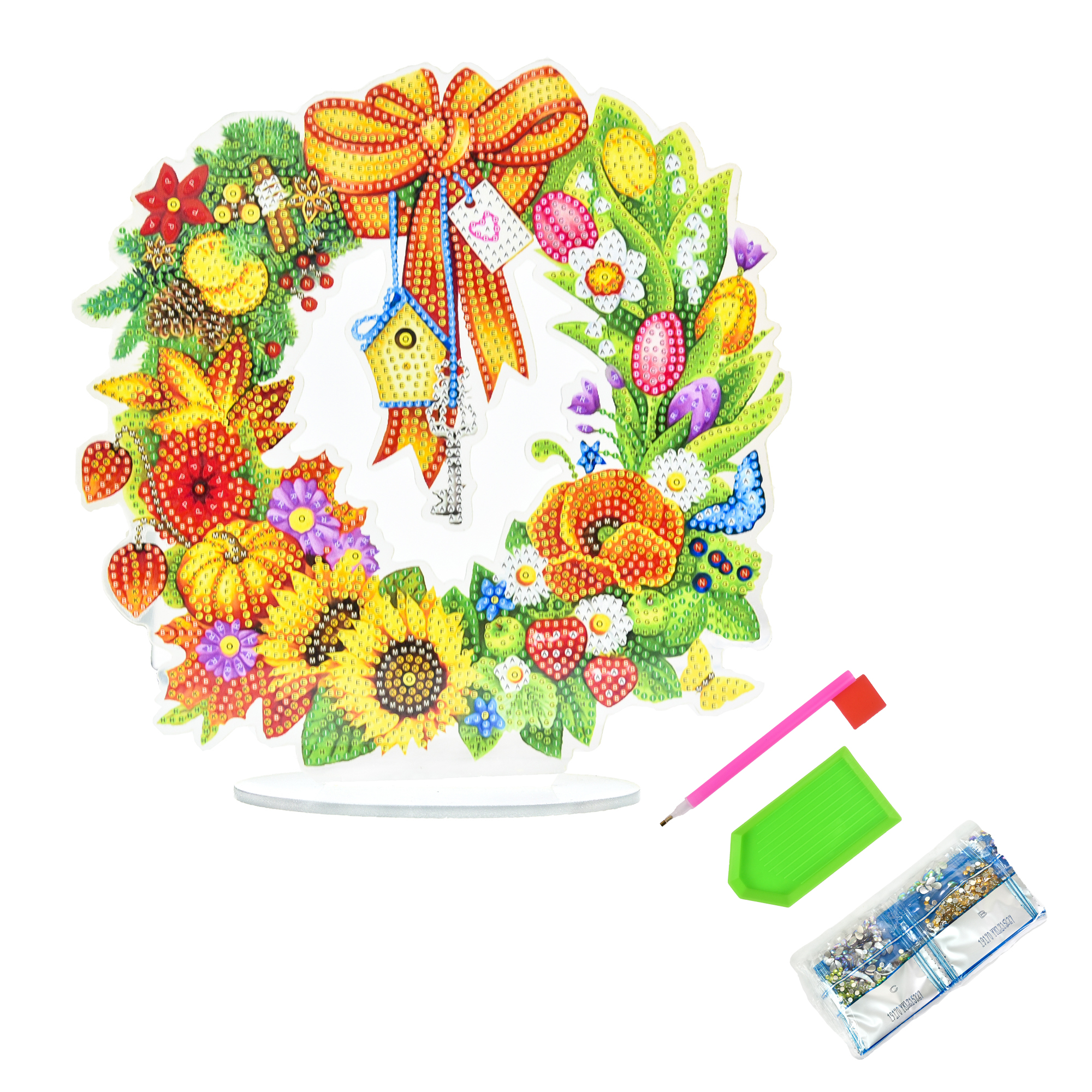 Diamond mosaic Strateg PREMIUM Wreath - All year round on a stand size 25x25 cm (YKLZ16354)