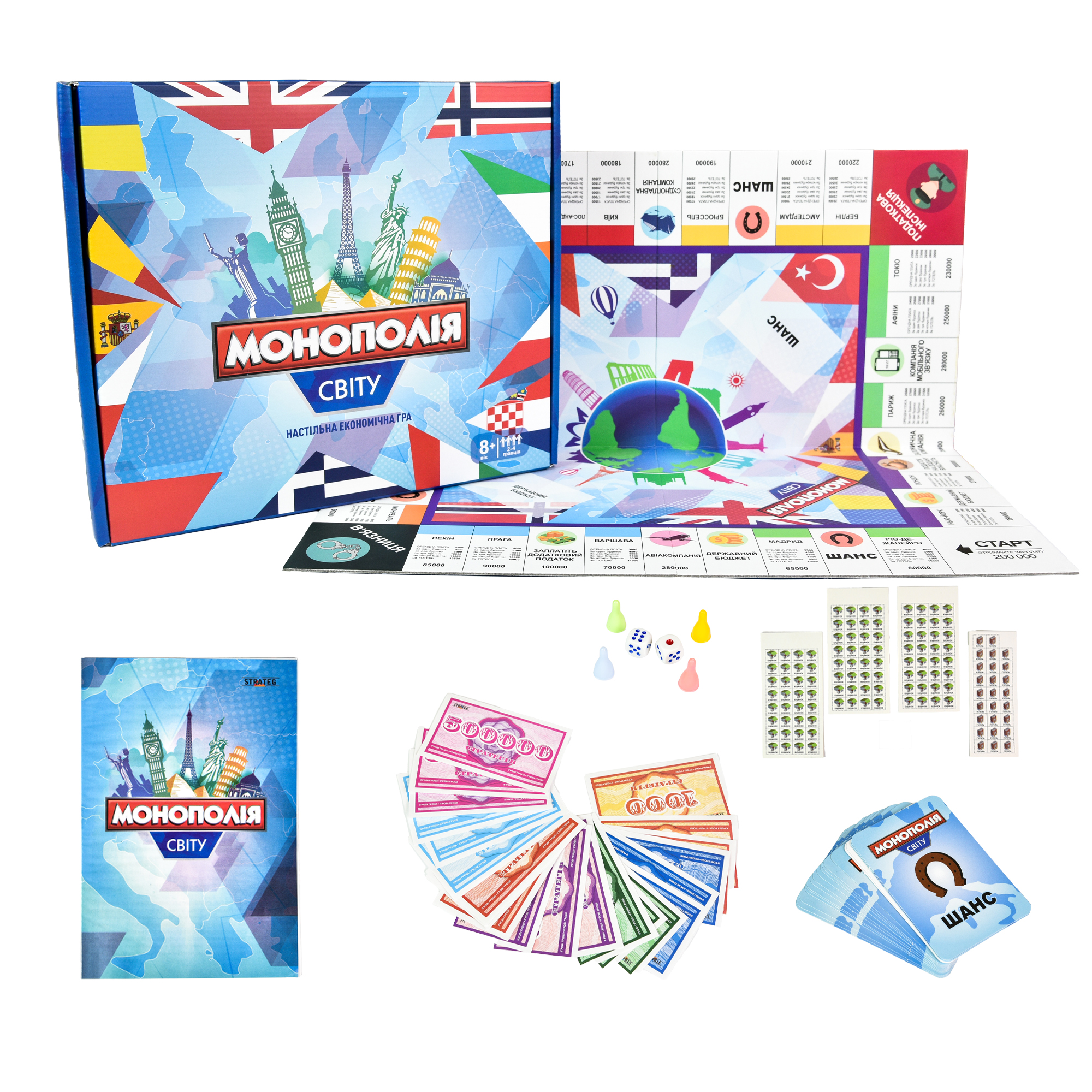 «Економіка світова» Strateg (7007) може стати приводом зацікавити всю свою сім’ю та позмагатися за звання найкращого стратега. Не забувайте обдумувати кожний крок, адже один невірний хід і ви банкрут!