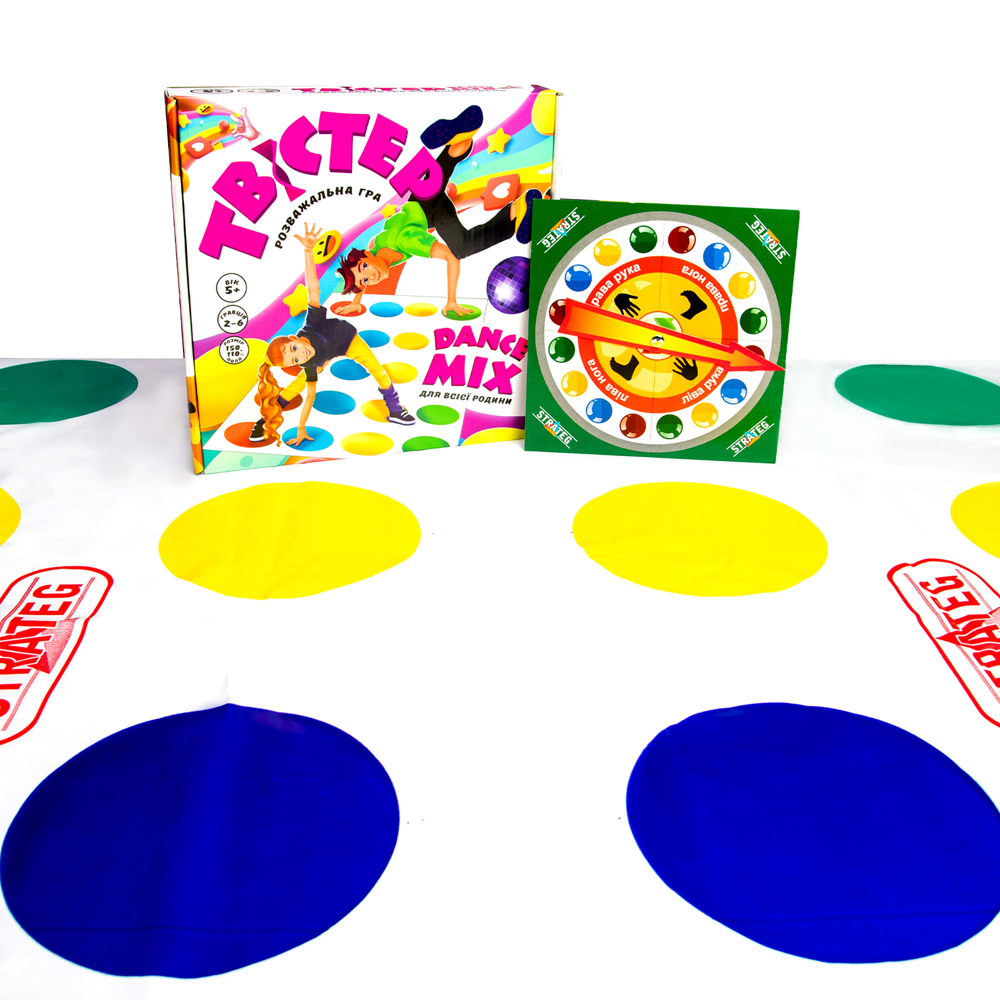 «Твістер dance mix» (Твістер Денс Мікс) – рухлива гра для дітей і дорослих. Вмикайте музику, крутіть рулетку та грайте досхочу. Правила дуже прості – виграє той, хто зміг втримати рівновагу найдовше за інших. Така гра не тільки розвеселить малечу, а й допоможе їм навчитися взаємодіяти з однолітками.