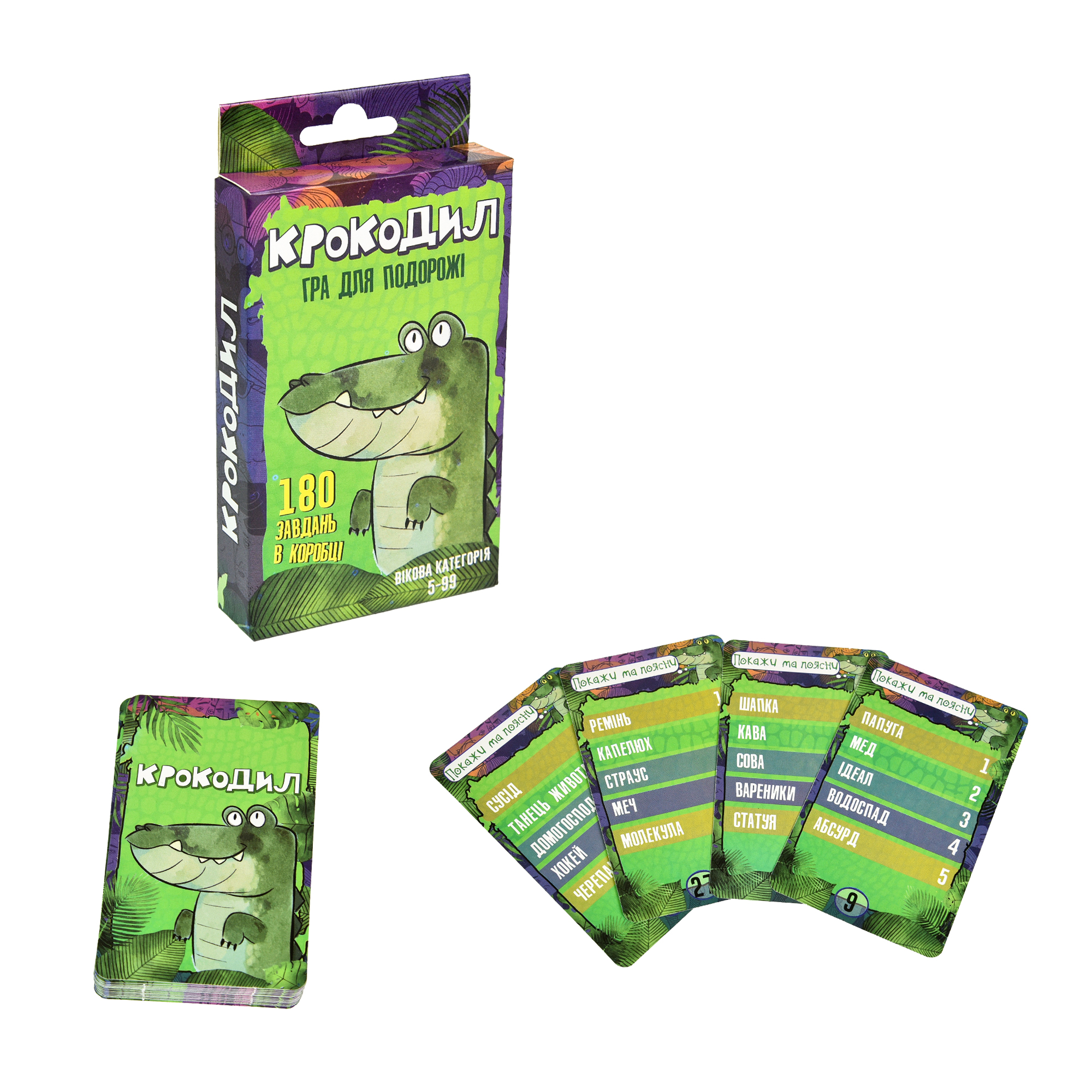 Слова у картках українською мовою. Той, хто вгадав слово, стає ведучим. Перемагає найкмітливіший. Грати можна командами. Правила прості, але гра захопить учасників із першої партії.