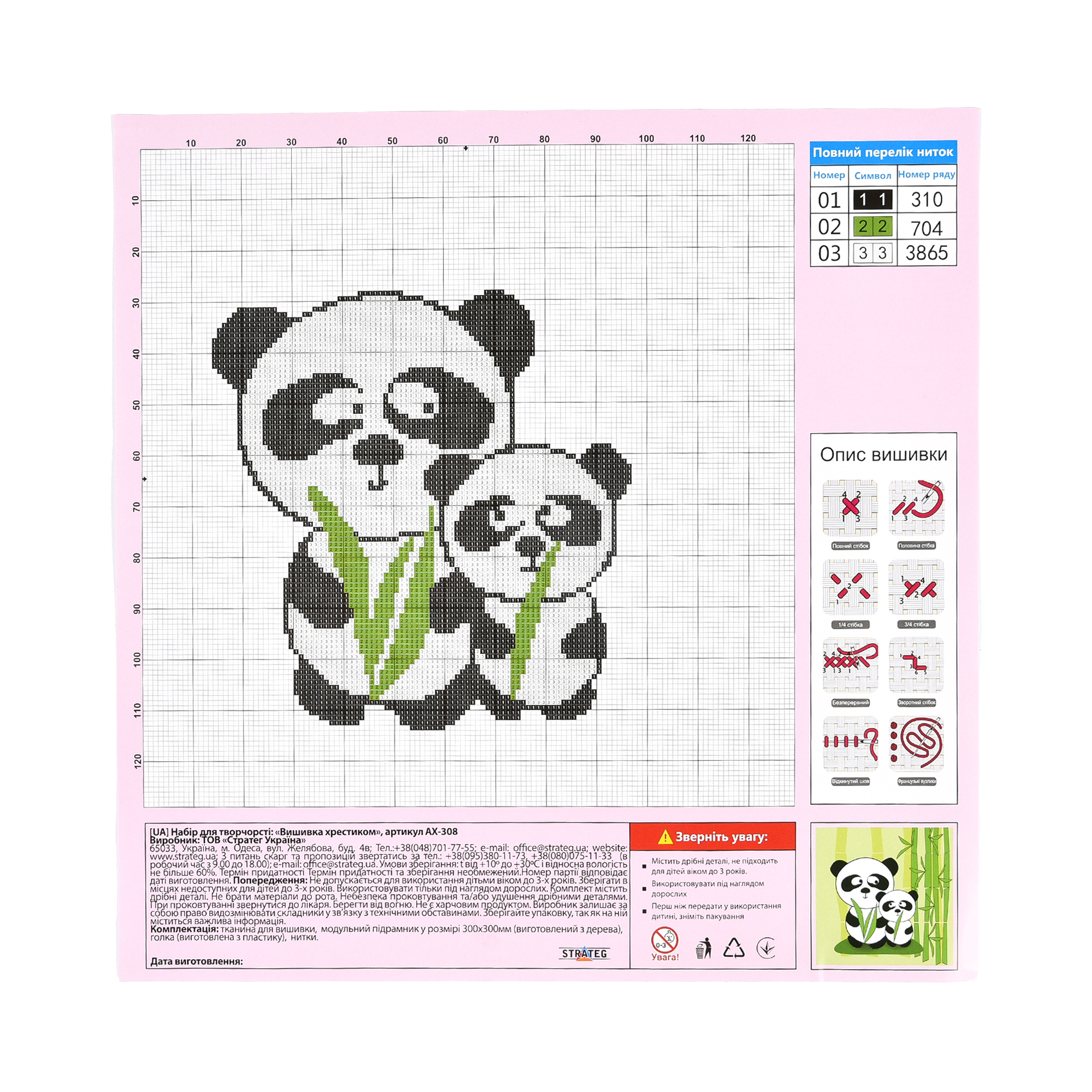 Набір для творчості вишивка хрестиком Дві пандочки Strateg розміром 30х30 см (AX-308)