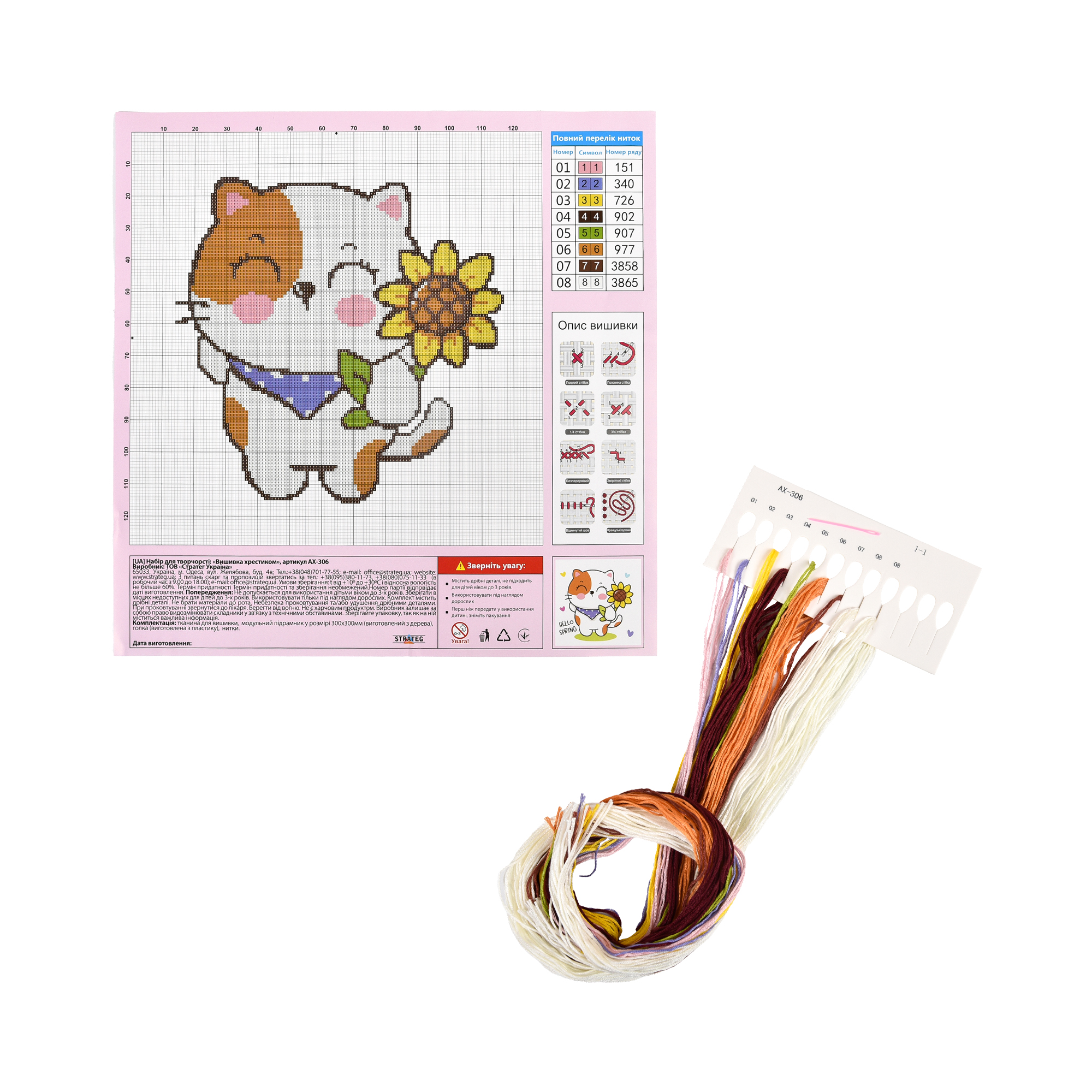 Набір для творчості вишивка хрестиком Кошеня з соняхом Strateg розміром 30х30 см (AX-306)