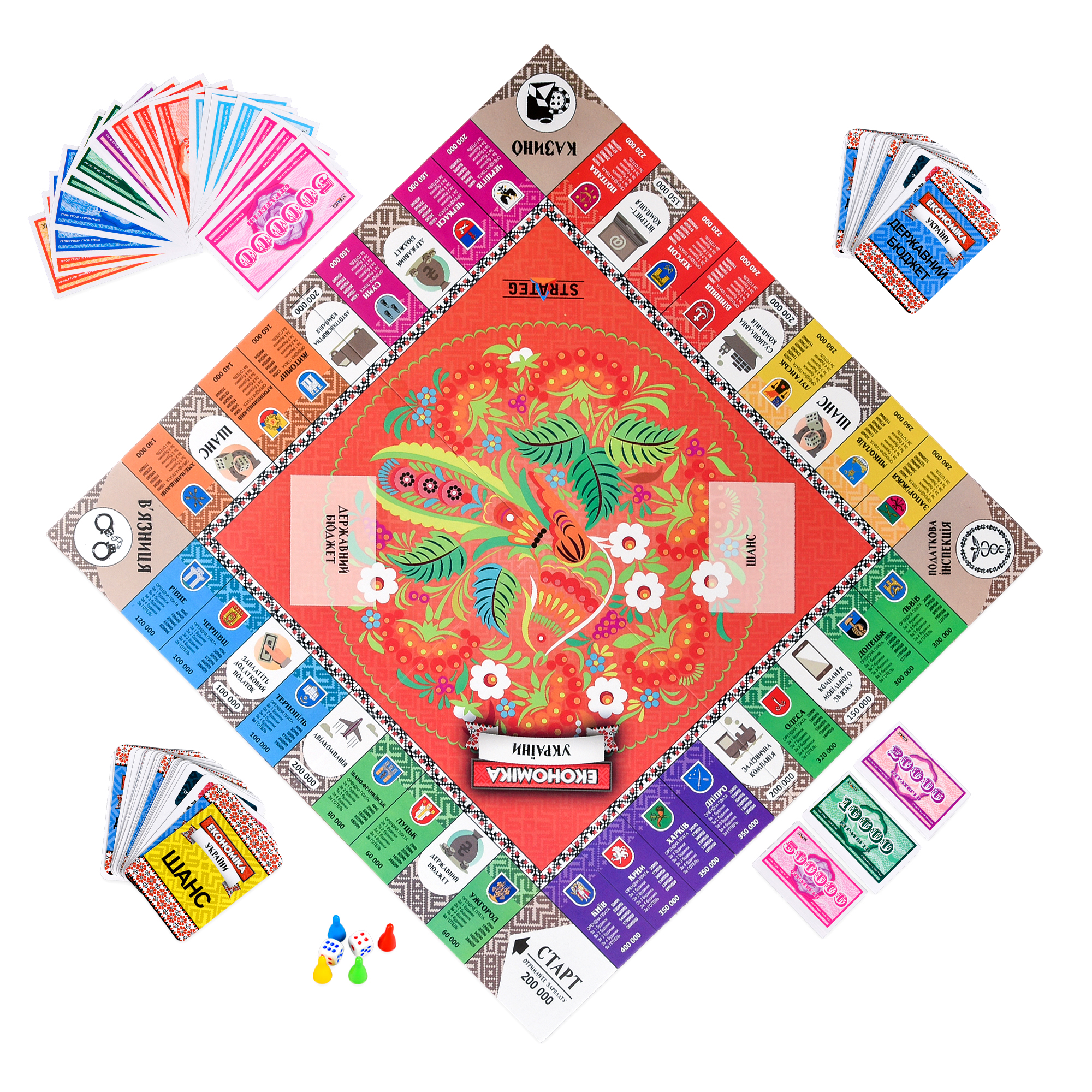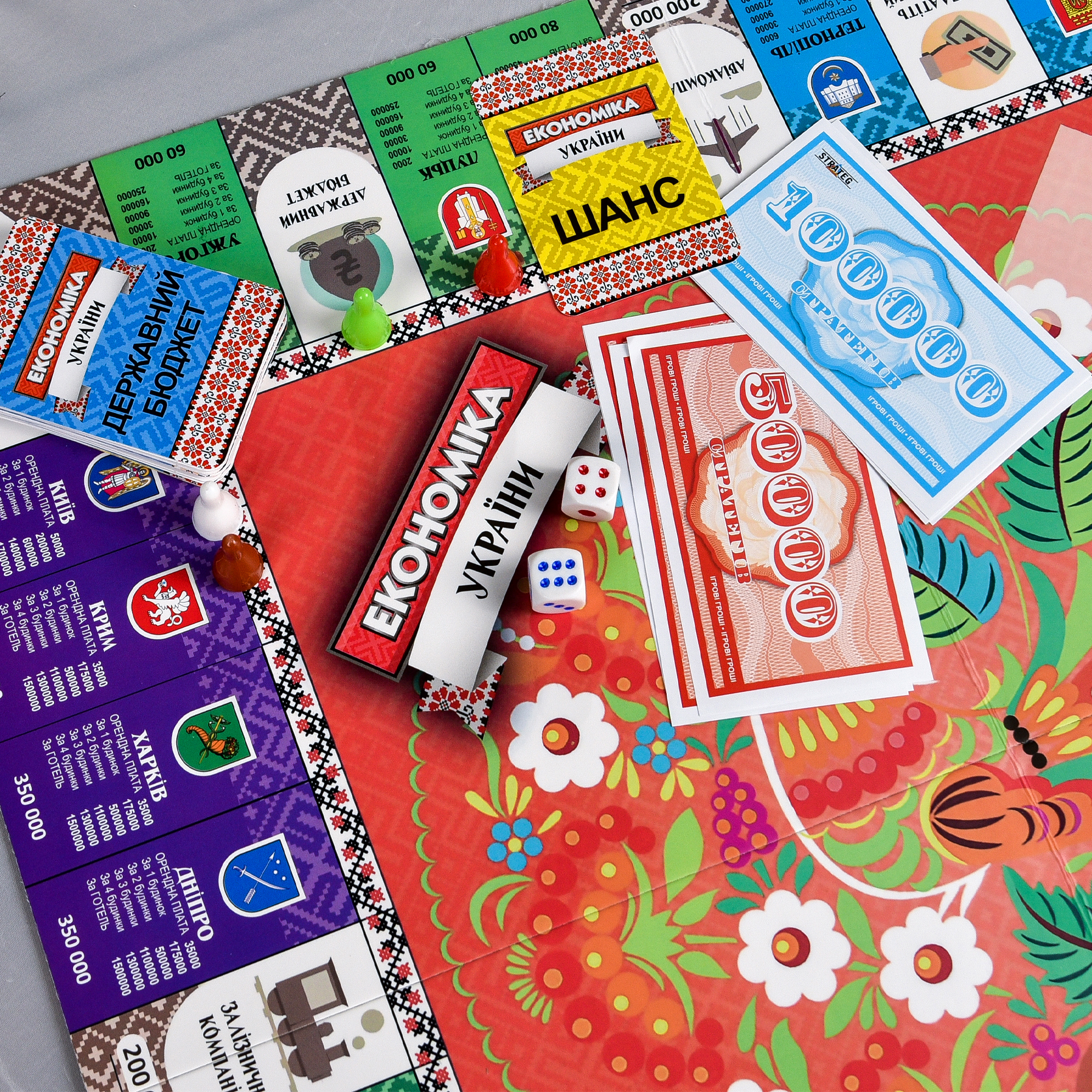 Настільна гра «Економіка України» — це стратегічна гра про гроші, інвестиції та змагання за першість. Гравці кидають кубик, рухаються полем, купують міста України й отримують дохід із суперників, які потрапляють на їхні володіння.