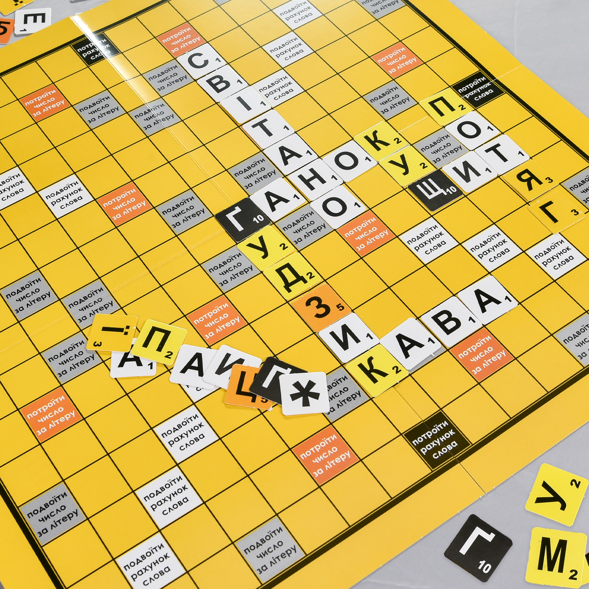 Гравці по черзі складають слова з літер на ігровому полі, заробляючи очки. Чим довше слово й вдаліше розташування, тим більше очок. Грайте до останньої плитки та дізнайтеся, у кого найбільший словниковий запас!