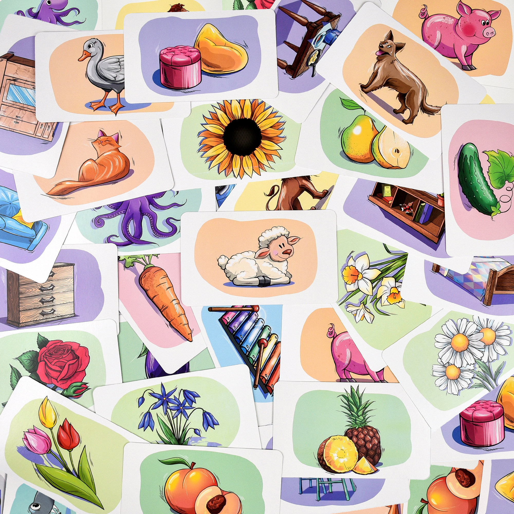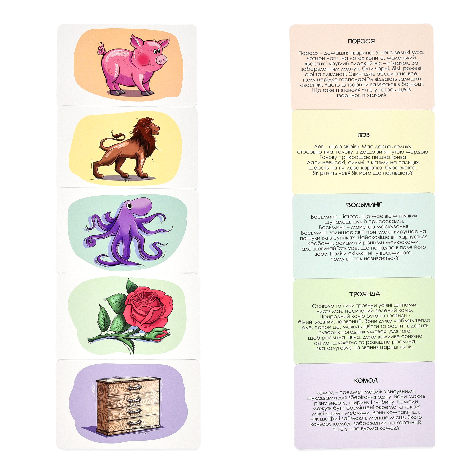 Комплектація: коробка (виготовлена з картону), картки - 80 шт. (виготовлені з картону), інструкція (виготовлена з паперу).